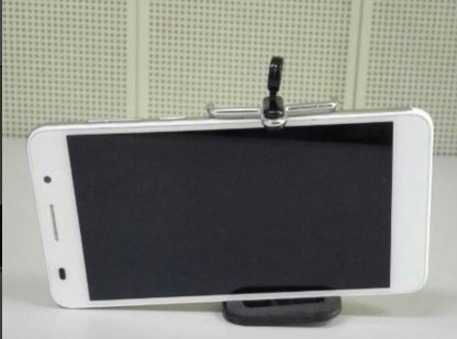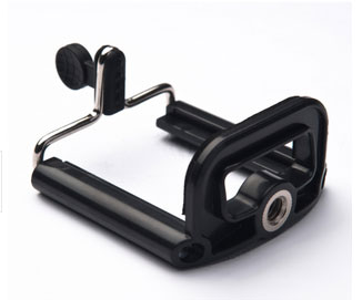 1、手机夹子拧在三脚架底板上 2、把手机夹子顶端拉开,夹紧手机